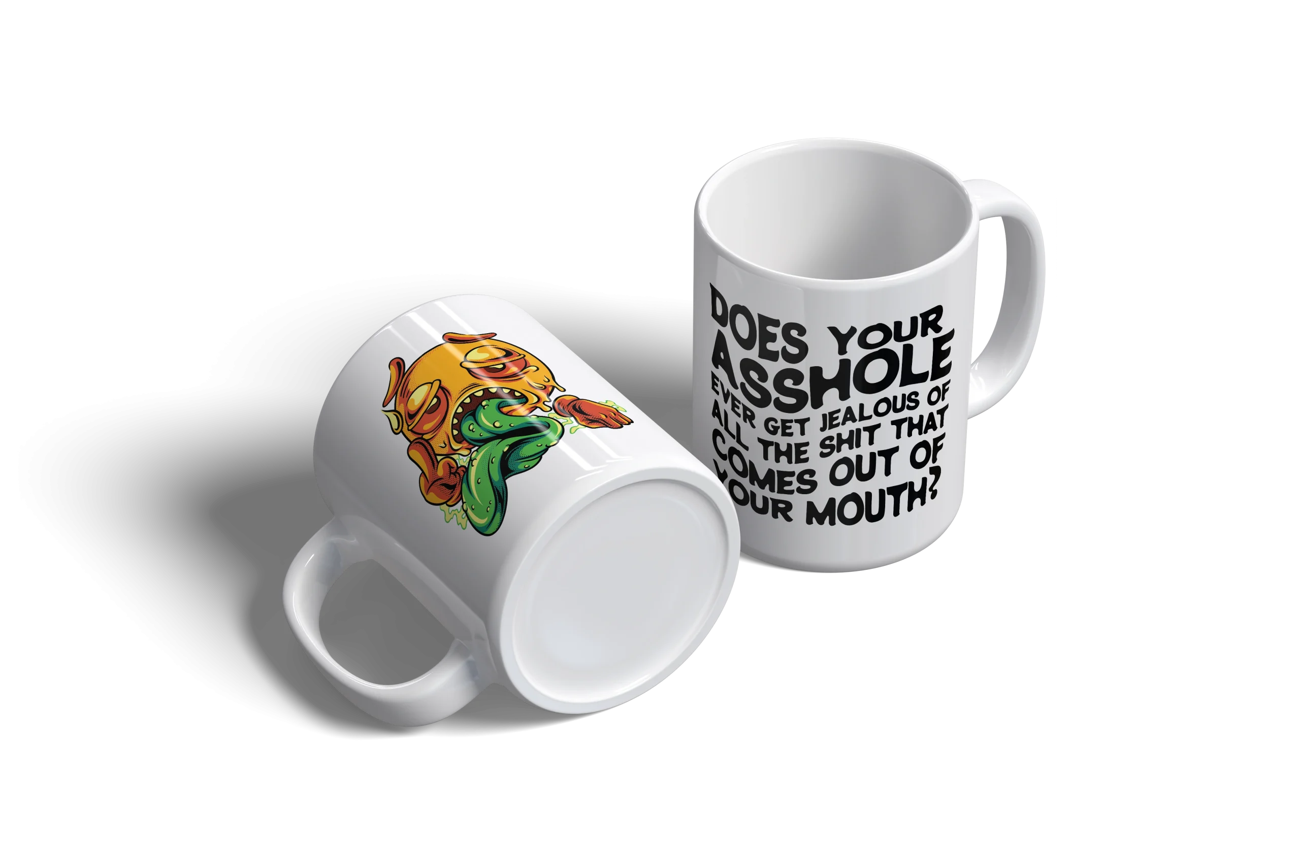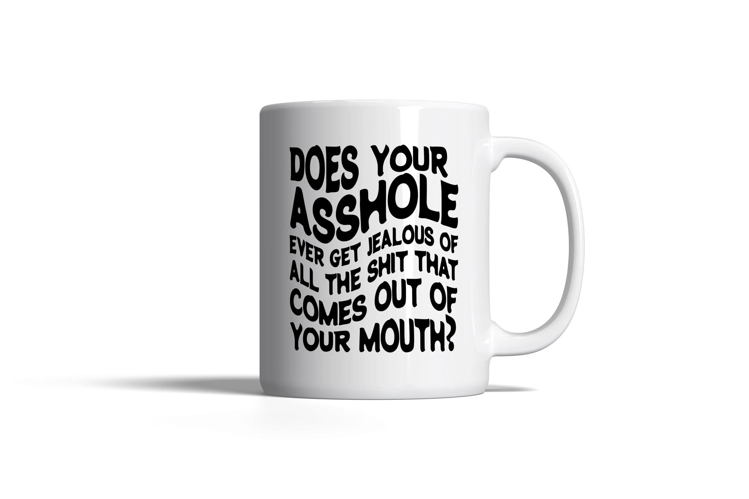 Oh, feast your eyes on the Does Your Asshole Ever Get Jealous Mug from YougotMugged.net, the crown jewel of petty revenge for anyone cursed with a co-worker who’s a walking, talking dumpster fire of stupidity-(or your Boss!.) This mug is a weapon of mass sarcasm, a gleaming white beacon of snark that’s here to call out the office moron in the most delightfully vicious way possible. The text, scrawled in a wavy, 1970s fever-dream font, practically screeches, “Does your asshole ever get jealous of all the shit that comes out of your mouth?” I mean, really, does it? Because with the sheer volume of garbage they spew, their backside must be green with envy, wondering why it’s not getting any stage time.